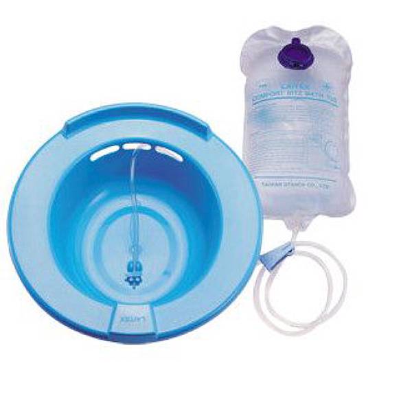 泡盆:生完的時候包媽傻傻叫老龍去藥局買一般泡盆(類似於臉盆),因此坐的時候一直覺得整個屁屁都泡在臉盆裡,後來在表妹建議之下去買了類似於下方這種泡盆,這種泡盆比較小所以不會整個屁屁都掉進去,而且可以直接放在馬桶上,包媽的做法是把水袋的注水口對著水龍頭,就會有乾淨的水一直在循環,所以在做月子期間包媽無緣坐在鐵架上而都是坐在馬桶上泡傷口,提醒馬迷們買泡盆前可以稍做考量。